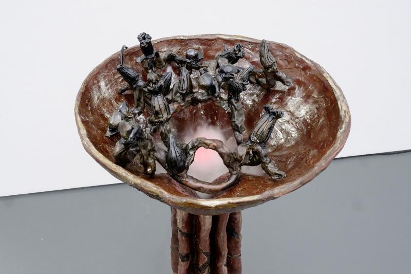 In diesem Sinn versteht sie ihre künstlerische Praxis als fluiden Ort kritischer Reflexion. Das konkrete bildhauerische Material wird verwoben mit Erzählungen unterschiedlicher Quellen – etwa die der mythologischen Sirene, wobei tradierte Sinnbezüge aufgebrochen und verändert werden.