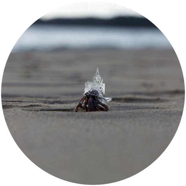 In der seit 2009 entstehenden Serie Why Not Hand Over a “Shelter” to Hermit Crabs? stellt Aki Inomata Einsiedlerkrebsen mithilfe von 3D-Druck gefertigte Schneckenhäuser zur Verfügung, die auf ihrer Oberfläche mit Architekturen verschiedener Städte versehen sind. Die Arbeiten verweisen nicht nur auf das Zusammenspiel und die gegenseitige Entwicklung von Mensch, Tier und Technologie, sondern werfen zugleich Fragen zu Umweltwandel, Heimatbegriff und Nationalität sowie zu den Auswirkungen von Vertreibung und Migration auf.