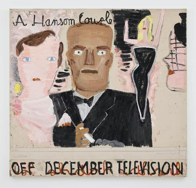 Rose Wylie, A Handsome Couple, 2022 © Oil on canvas 68 3/4 x 72 1/4 inches 174.5 x 183.5 cm © Rose Wylie Courtesy the artist and David Zwirner Photo by Jack Hems
