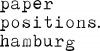 Vom 29. September – 2. Oktober 2022 werden auf der paper positions hamburg die Werke von über 30 internationale Künstler:innen im zentral gelegenen Jupiter, dem ehemaligen Karstadt Sport, in der Mönckebergstraße ausgestellt. Ausgewählte Hamburger Galerien und eine kleine Auswahl von Aussteller:innen aus anderen Teilen Deutschlands präsentieren jeweils eine künstlerische Position zeitgenössischer und moderner Kunst mit, aus und auf Papier.