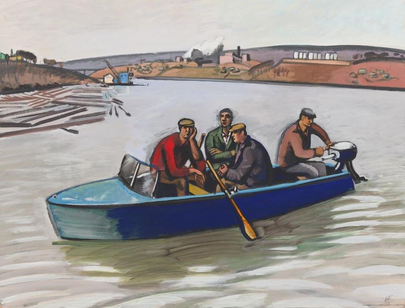 Wolfgang Mattheuer, Im Motorboot auf der Wolga 1967, Gouache, Nachlass des Künstlers © VG Bild-Kunst, Bonn 2026, Foto: Galerie Schwind, Leipzig