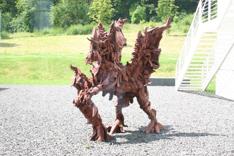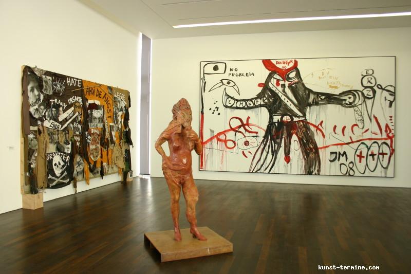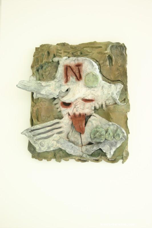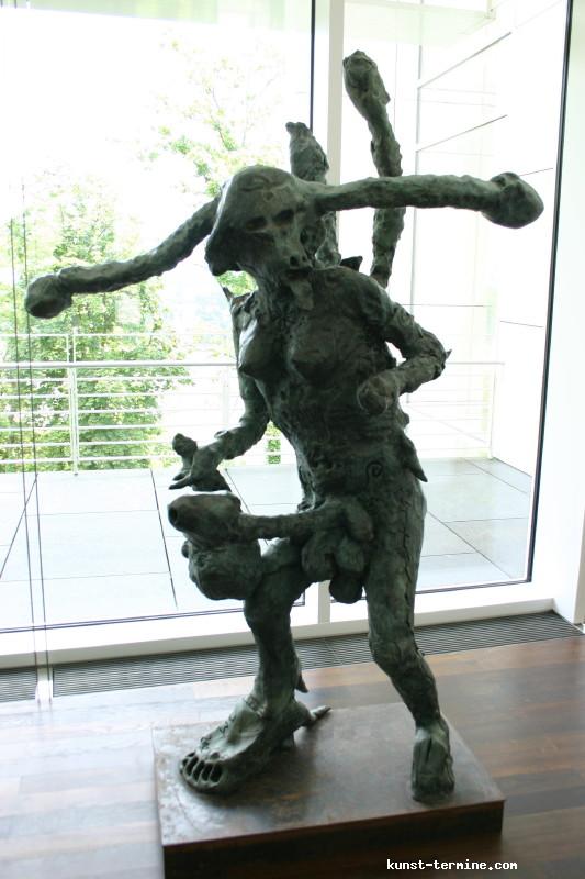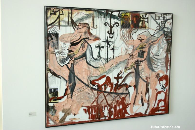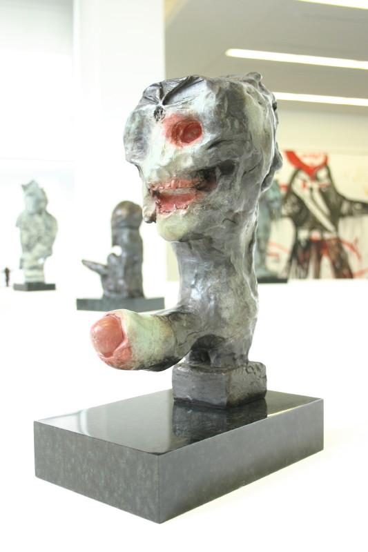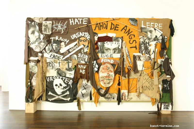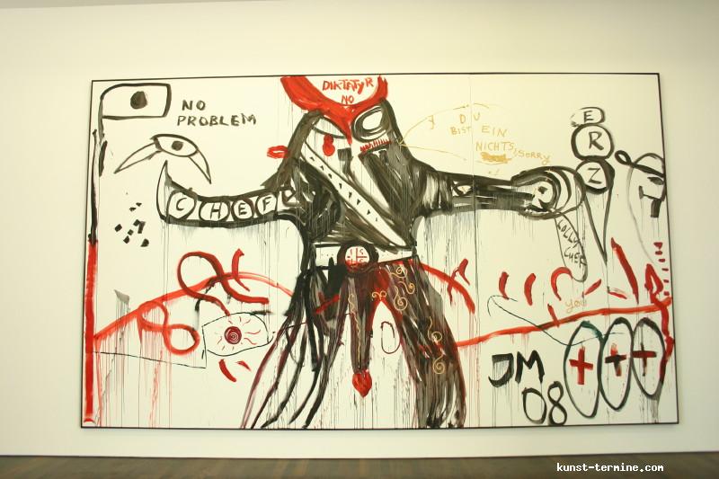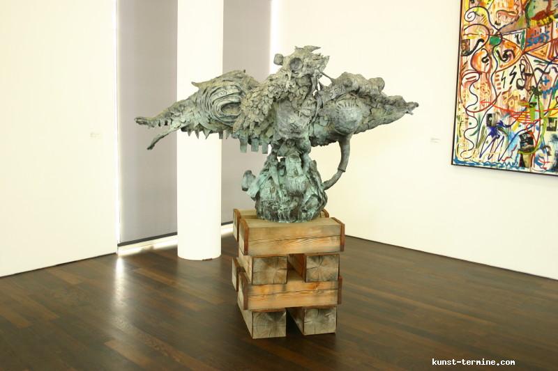 1. Mai bis 30. August 2009 Jonathan Meese hat Atlantis am Rhein entdeckt. Nun errichtet der international agierende Maler, Bildhauer, Wort-, Klang- und Aktionskünstler in Rolandseck den »Erzstaat Atlantisis«. Seine szenographische Inszenierung aus Bronzegussplastiken, Gemälden, Installationen und Klangkollagen führt von der Wasseroberfläche in die Tiefe und wieder empor – vom Rheinufer hinein in den Berghang und 40 Meter hinauf in den lichtdurchfluteten Meier-Bau des Arp Museum. Das versunkene Inselreich scheint hier als »Antirealität« auf, in der Meeses »Diktatur der Kunst« herrscht. Selbst die schwierigsten Themen sind so von spielerischer Leichtigkeit. Ergänzt wird die Ausstellung durch einen Film von Jan Bauer sowie eine Audioführung, in der Meese zusammen mit dem Kurator Daniel J. Schreiber den Atlantisis-Parcour erläutert. Das Begleitprogramm umfasst Performances von Meese, eine Märchenlesung seiner Mutter und eine Reihe mit Meeses fantastischen Lieblingsfilmen wie Clockwork Orange, Zardoz oder Barbarella. zurück |